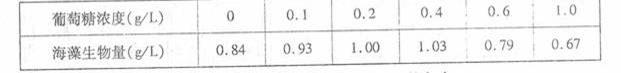 (3)向培养液中添加葡萄糖配成不同浓度的培养液,在一定光照条件下培养该海藻,测定海藻的生物量如下表: