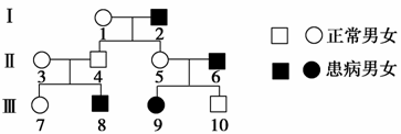 (4)若Ⅱ3和Ⅱ4均不患红绿色盲且染色体数正常,但Ⅲ8既是红绿色盲又是Klinfelter综合征(XXY)患者,其病因是Ⅱ代中的______号个体产生配子时,在减数第______次分裂过程中发生异常。