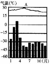 26、读下面气温曲线图和降水柱状图,回答问题:(分)