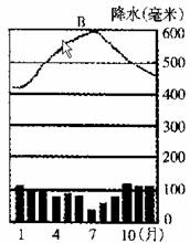 (3)、读图B可判断B地_____(季节)降水量甚少,说明B地气候最显著的特征是_______________________________。