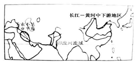 下图为三个人类文明发祥地,这三个地区共同的特征是
