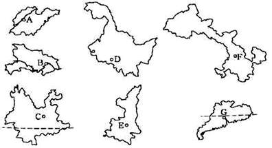 几个重要的省的轮廓,常考(一定要记下、省名、简称、行政中心,并在图上填出来)