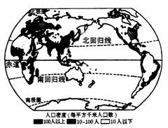 读世界人口分布图,完成1-3题。