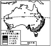 读澳大利亚人口分布图,完成3-4题。