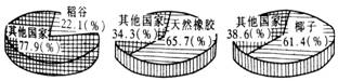 由图,哪一个地区的稻谷、天然橡胶、椰子能占到世界的22.1%、65.7%、61.4% ?A.拉丁美洲