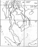 读东南亚部分地区图。回答6-8题。