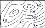 读等高线地形图,回答3-4题。