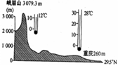 读图,重庆与峨眉山顶7月平均气温示意图,完成9-10题。