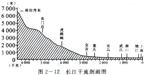 24.图2-12为长江干流剖面图,读图回答下列问题。