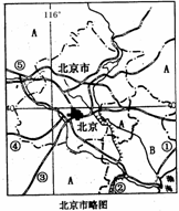⑴写出北京市大致的经纬度:经度 ,纬度 。