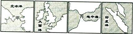 C丙海峡是土耳其海峡,沟通了地中海和黑海