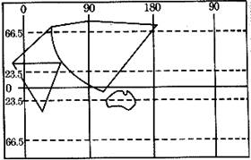 请参照下图,在图中适当位置用简单的几何图形,画出南、北美洲和南极洲的轮廓。
