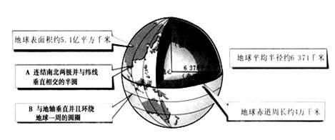 其平均半径为_______千米。图中字母A表示_____;字母B表示_______。