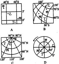 (2008山东德州)读下面四幅经纬网示意图,完成11-12题。