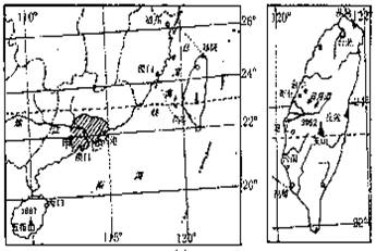 ⑶台湾省城市、居民主要分布在台湾岛的西部,自然原因是________________________________。⑷台湾素有“水果之乡”的美誉,盛产芒果、菠萝等水果,其适合生产水果的气候 条件是______________________。