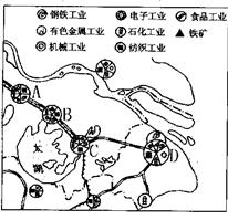 (1)该地区最大的工业中心是____________市(填字母),B城市的主要工业部门有____