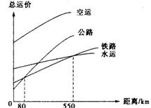⑵运输距离在80---550Km之内,最廉价的运输方式是________。