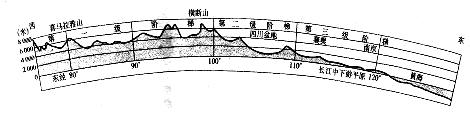 读我国东西向(北纬32°)地形剖面图,完成2-4题。