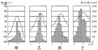 读“我国四城市气温曲线和降水量分配示意图”(图7)中考资源网,完成22-23题。中考资源网