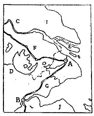 (1)将图中字母代表的地理事物名称,填写在下面的横线内。中考资源网