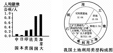 等国家。中考资源网我国耕地、林地、难利用土地分别占全国土地总面积的百分比