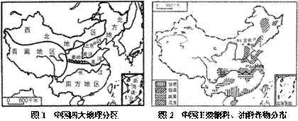 24.读“中国四大地理分区图(图1)中考资源网”和“中国主要糖料、油料作物分布图(图2)中考资源网”,回答问题。中考资源网(10分)中考资源网