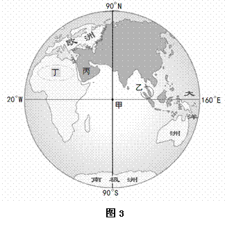 地球按经度划分为西半球和东半球。图3示意的是东半球,结合图中信息完成7-11题。