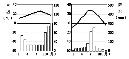 A.降水较多,气温较高 B.降水较多,气温较低