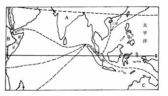 B 海峡,最终到达C 洋。