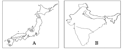 2、读日本、印度两国图,回答(8分):