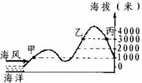 (3)乙、丙两地中,降水较多的是________地,原因是该地位于湿润海风的________(迎风坡、背风坡)。