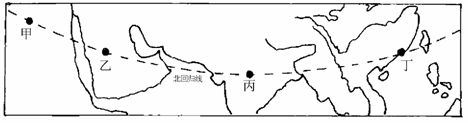 C.乙地终年炎热干燥 D.丙、丁两地夏季均盛行东南风