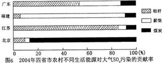 大气污染与使用能源的种类密切相关。以秸杆、薪柴、煤炭三种能源对大气 SO2。污染的贡献率 100%计,读图 6并结合相关知识,完成 19-20题。
