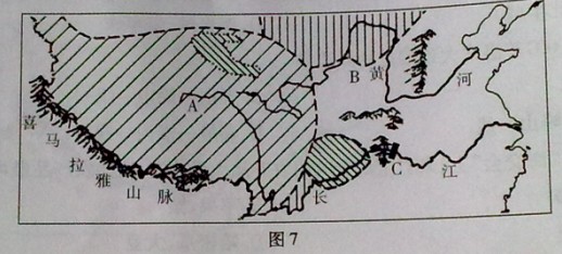 26、长江、黄河是中华民族母亲河,读图7回答下列问题。