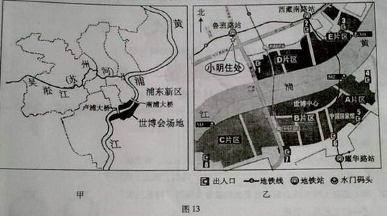 30、2010年世界博览会在我国上海举办。读图13回答下列问题: