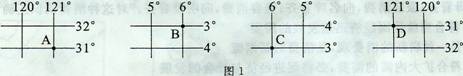 1.2010年,举世瞩目的世博会在我国上海隆重举行,请根据所学的经纬网知识判断,图1所 示各点中,上海位于