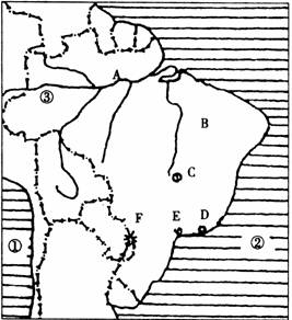 ⑶该国首都和最大城市分别是____、____,其图中代号分别为__、__。