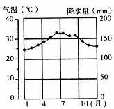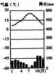 [解析]该题考查对某地的气温和降水量柱状图的识别。此题分析时要分清代表气温的是曲线图,代表降水量的是柱状图,要注意降水量与气温变化的配合状况、降水集中的月份、降水的成因等综合分析。