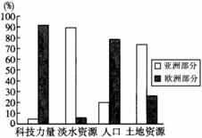 右图是“俄罗斯亚洲部分和欧洲部分几种资源所占比例示意图”,读后判断俄罗斯亚洲部分占优势的资源是