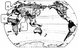 (2)F地区虽然与长江中下游平原地处同一个纬度,但两地气温在同一季节却出现了20。C的温差。你认为造成这种差异的主要原因是什么?