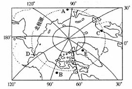 44、读“北极及其周围地区图”,回答下列问题。(5分)