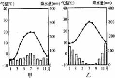 (4)图中D地的气候类型与甲乙两图中的 图所表示的气候类型相符,其气候特点是 。