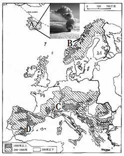 (3)本区旅游资源丰富。李朋同学准备暑假随爸爸游览冰雪皑皑的阿尔卑斯山峰、乘船欣赏陡峻幽深的峡湾风光,他们应分别到B、C、D三地中的