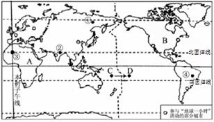 (1)关灯接力活动从大洋洲开始,经亚洲、欧洲、 A 洲、南美洲,最后在B 洲西岸结束。