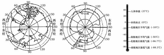 (3)由南北极地区气温比较可知,南极气温比北极气温低的多。你能解释其原因吗?