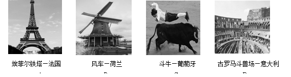 旅游景点图片,他在网上发送给玲玲时,有个国家标注错