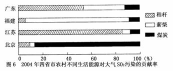 大气污染与使用能源的种类密切相关。以秸杆、薪柴、煤炭三种能源对大气 SO2。污染的贡献率 100%计,读图 6并结合相关知识,完成 13-14题。