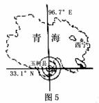 (2010年福州中考)2010年4月14日,青海玉树县发生了7.1级地震,读图5回答11-13题: