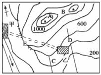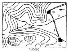 (2009·泉州中考)某中学地理夏令营野外考察,考虑到暴雨可能引发山洪而产生抢险,要求同学们不准在甲地搭帐篷宿营,读图,回答8--10题。