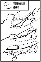 根据我国夏季风的进退和雨带推移规律,结合雨带在Ⅰ、Ⅲ地区的时间,可以推断,一般年份,雨带推移至Ⅱ地区(长江流域)的时间大致是
